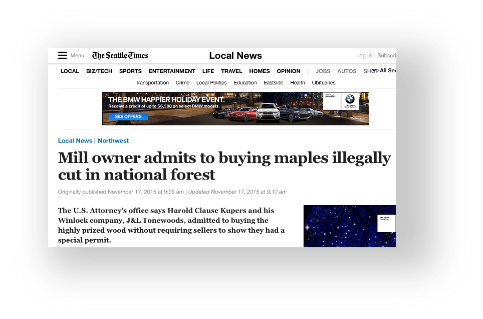 Turns out there is a big problem with illegal logging in the US, with revenue from such activity estimated at US$1 billion annually.